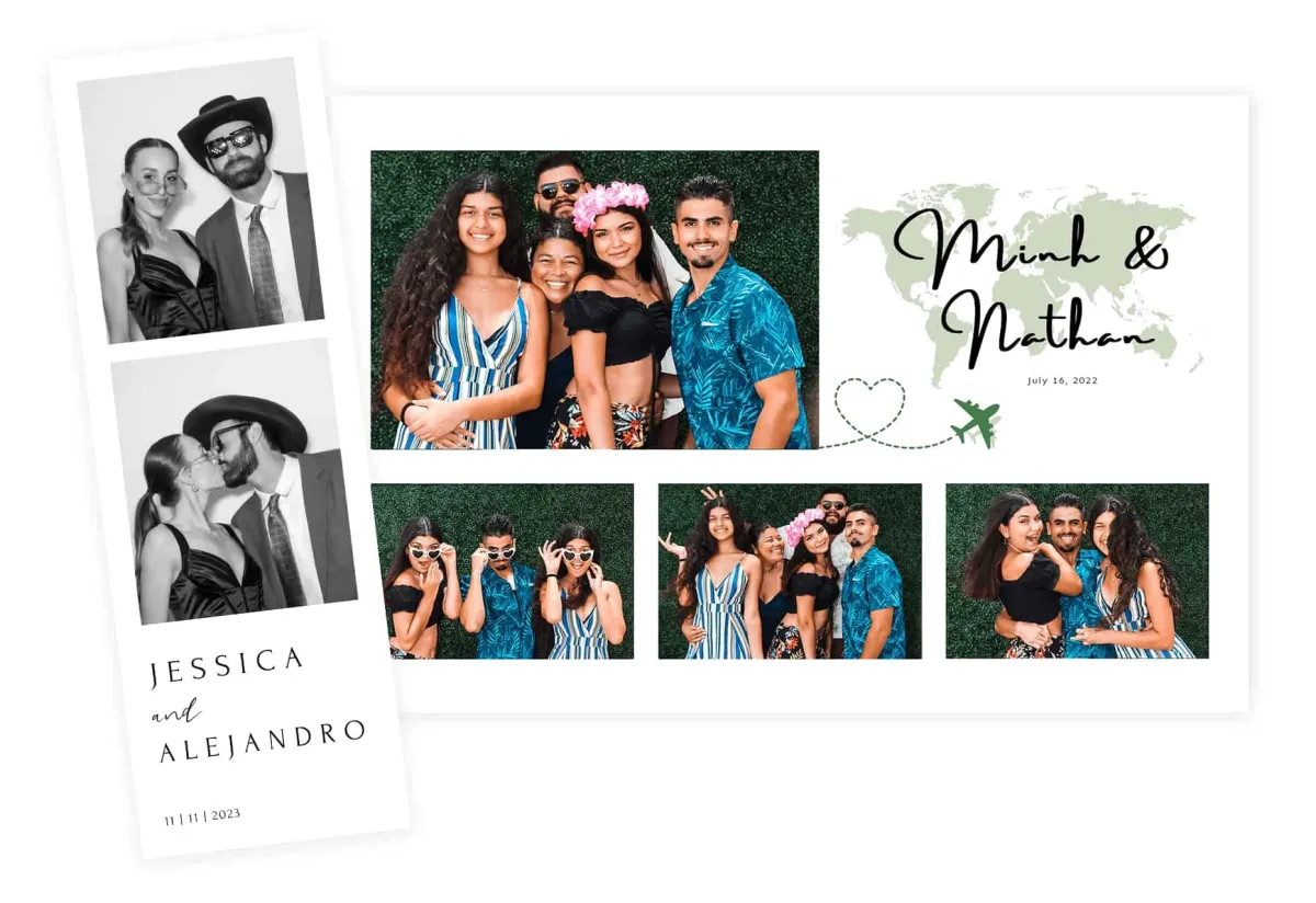 Everyone gets a print! Whether you love the classic 2x6 print strips or the larger, premium 4x6 prints, either option is included in our packages! Also we can do pretty much any design you dream of! Our in-house graphic designer will craft a custom framed print to match perfectly with your theme and style.