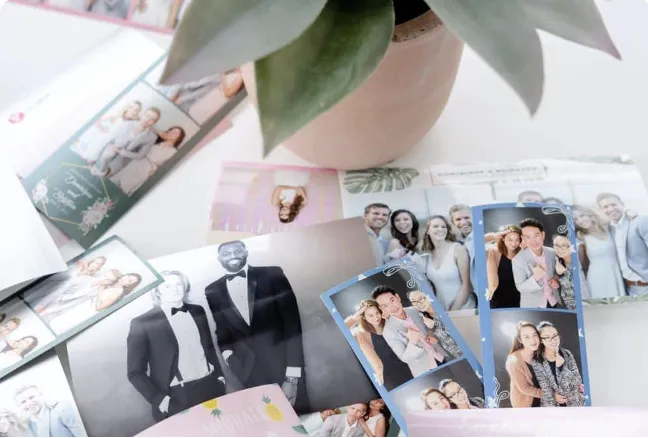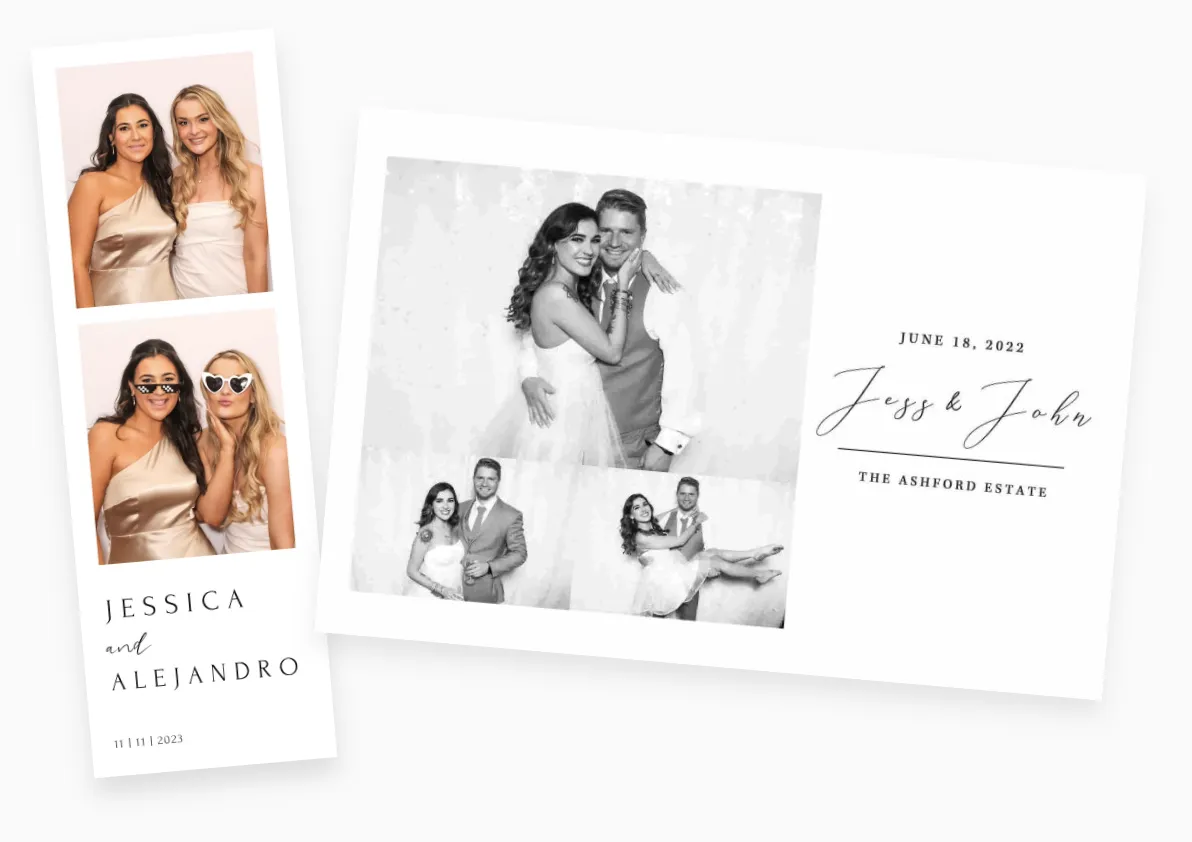 Whether you love the classic 2x6 print strips or the larger, premium 4x6 prints, either option is included in our packages! Also we can do pretty much any design you dream of! Our in-house graphic designer will craft a custom framed print to match perfectly with your theme and style.