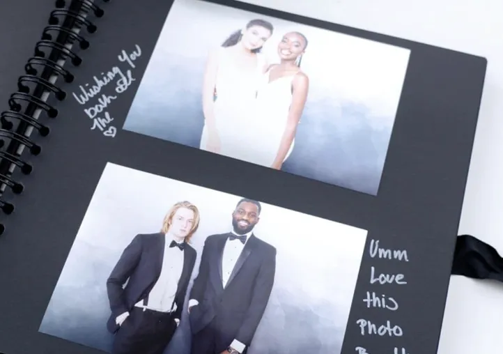Premium Quality Custom Guestbook with 20 colors to choose from. The perfect way to capture those fun memories and have guests sign. We will print an extra copy of each photo booth session for your book.